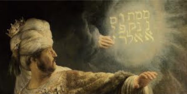 En toen verscheen de hand zonder lichaam die op de muur schreef. De wijzen van Babylon konden het geschrift niet ontcijferen. De bejaarde Daniël werd erbij gehaald om de code te ontcijferen en de betekenis ervan uit te leggen aan de doodsbange koning. Het was een boodschap van onheil, niet alleen voor Belsazar persoonlijk, maar voor het Babylonische Rijk. De Chaldeeuwse dynastie kwam diezelfde nacht ten einde – op 5 oktober 539 v.Chr.